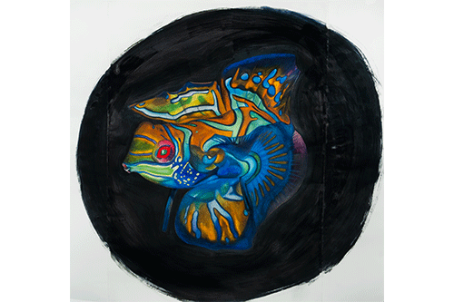 Mandarinfisch Aquarell - Buntstiftzeichnung, 100cm x 100cm, 2022